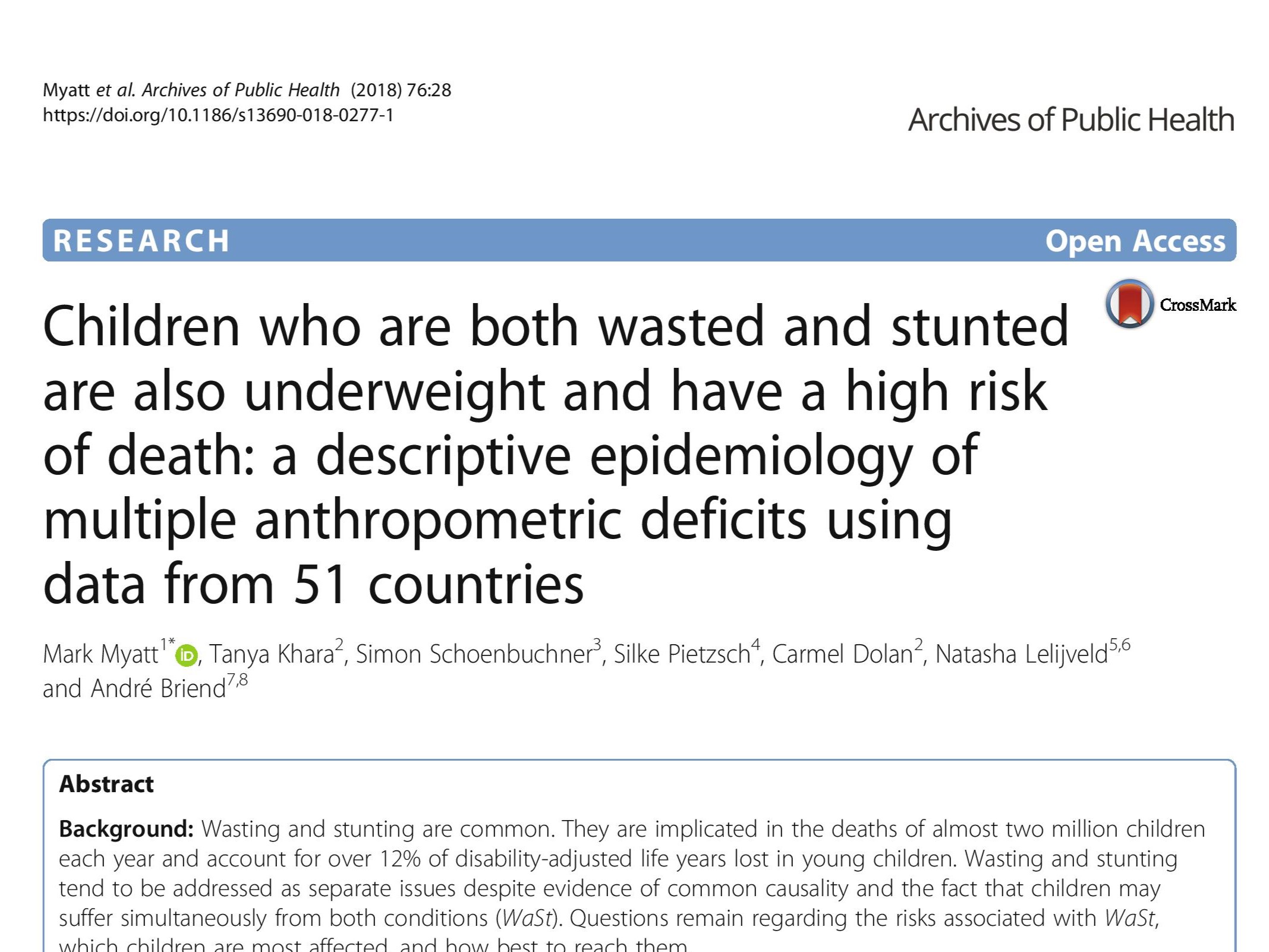 Conclusions: The category “multiple anthropometric deficits” can be abandoned in favour of WaSt. Therapeutic feeding programs should cover WaSt cases given the high mortality risk associated with this condition. Work on treatment effectiveness, duration of treatment, and relapse after cure for WaSt cases should be undertaken. Routine reporting of the prevalence of WaSt should be encouraged. Further work on the aetiology, prevention, case-finding, and treatment of WaSt cases as well as the extent to which current interventions are reaching WaSt cases is required.