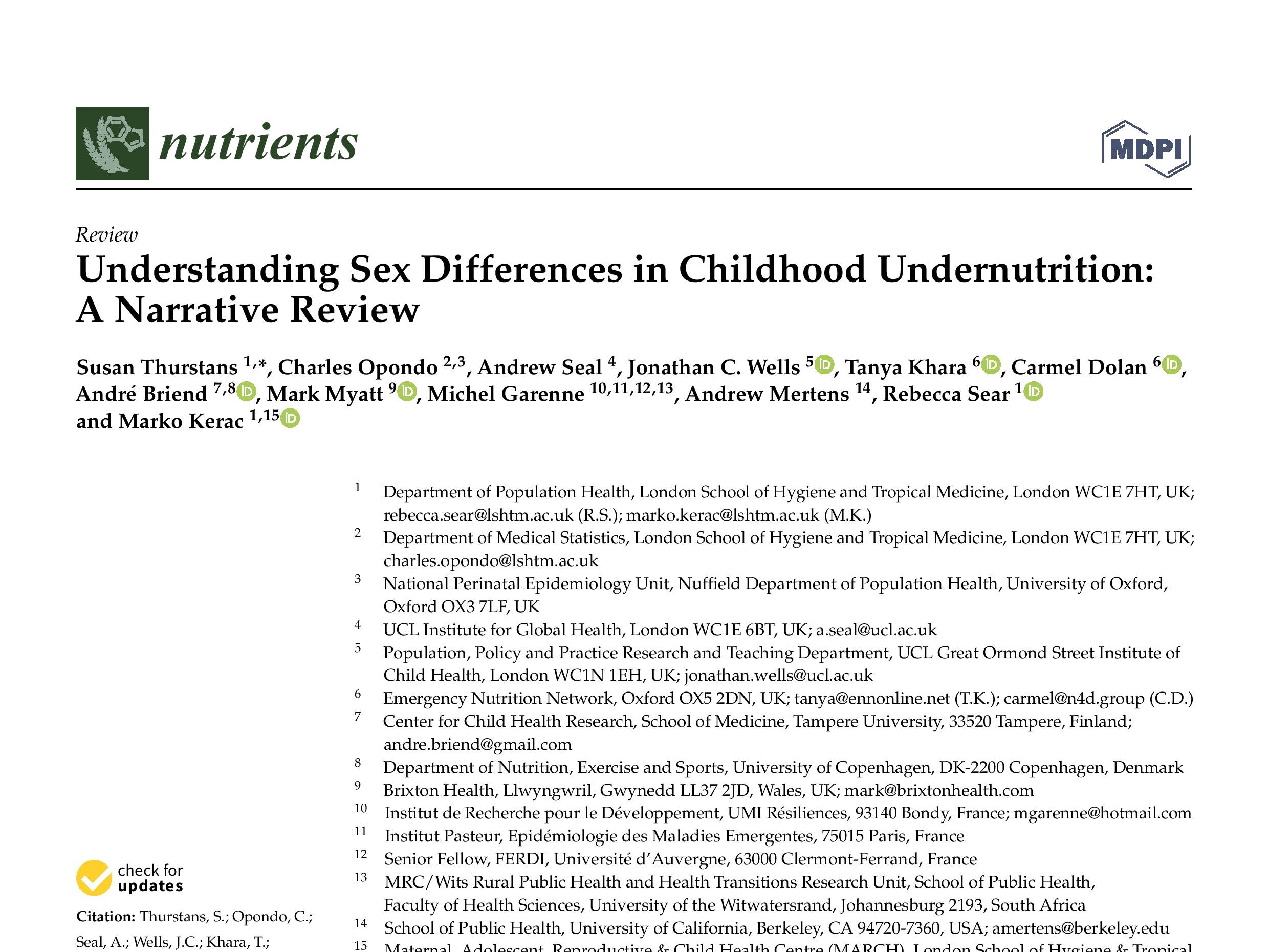 Understanding Sex Differences in Childhood Undernutrition: A Narrative Review